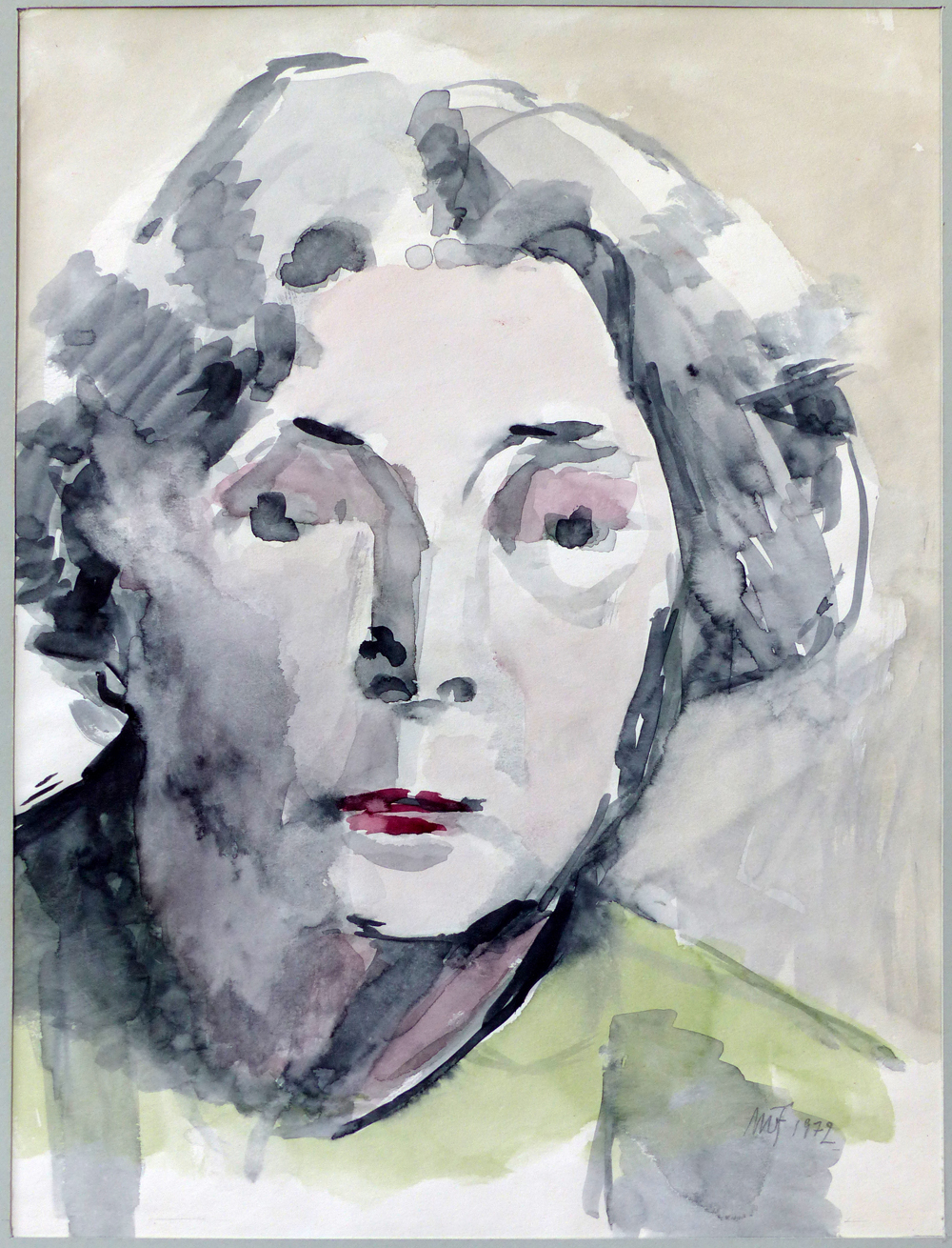 ohne Bezeichnung, Selbstportrait, Freiburg, 1972, Aquarell, 40 × 30 cm |